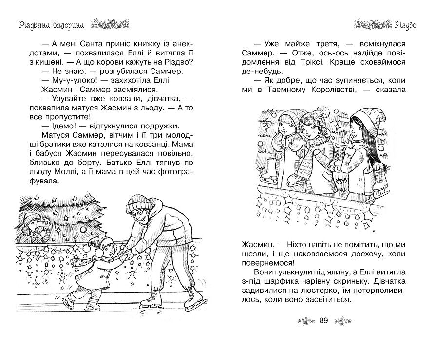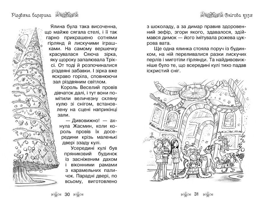 І справді, маленька фея Тріксі прилітає запросити подружок до Різдвяного палацу короля Веселого. Цьогоріч свято там обіцяє бути особливим. Для гостей має танцювати неперевершена балерина Розалінд… Точніше, мала б… Річ у тім, що Розалінд не приїхала до палацу. Вона зникла. Чи зуміють дівчатка зарадити лиху? Чи вдасться їм знайти балерину та врятувати свято? Читай про це в чарівній історії «Різдвяна балерина».