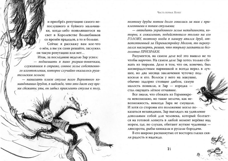 Это случилось в те далёкие времена, когда Британские острова ещё не знали, что они Британские, а в дремучих лесах обитали волшебные существа и враждовали два человеческих племени — волшебники и воители. Поэтому Зар и Виш в принципе не должны были встретиться. Ну, разве что в сражении, когда вырастут. Однако их угораздило познакомиться гораздо раньше, и возможно поэтому вражды между ними не случилось, а совсем наоборот. Но все равно первое их совместное приключение закончилась не слишком удачно – они случайно выпустили на свободу Короля Ведьм, и в дремучие леса вернулись чудовища, рыщущие в поисках Зара и Виш. Ведь у детей есть то, что может сделать Короля Ведьм навеки непобедимым! Хотя добраться до Зара им будет нелегко – мальчишка за свои шалости угодил в огромную тюрьму Горминкрег, откуда ещё никому не удавалось сбежать. За Виш, пожалуй, тоже можно не волноваться, ведь её мама, великая и ужасная королева Психора, велела выстроить гигантскую Стену по всей западной границе королевства — такую высокую, что за неё не заглянуть самым высоким великанам, даже если они встанут на цыпочки.