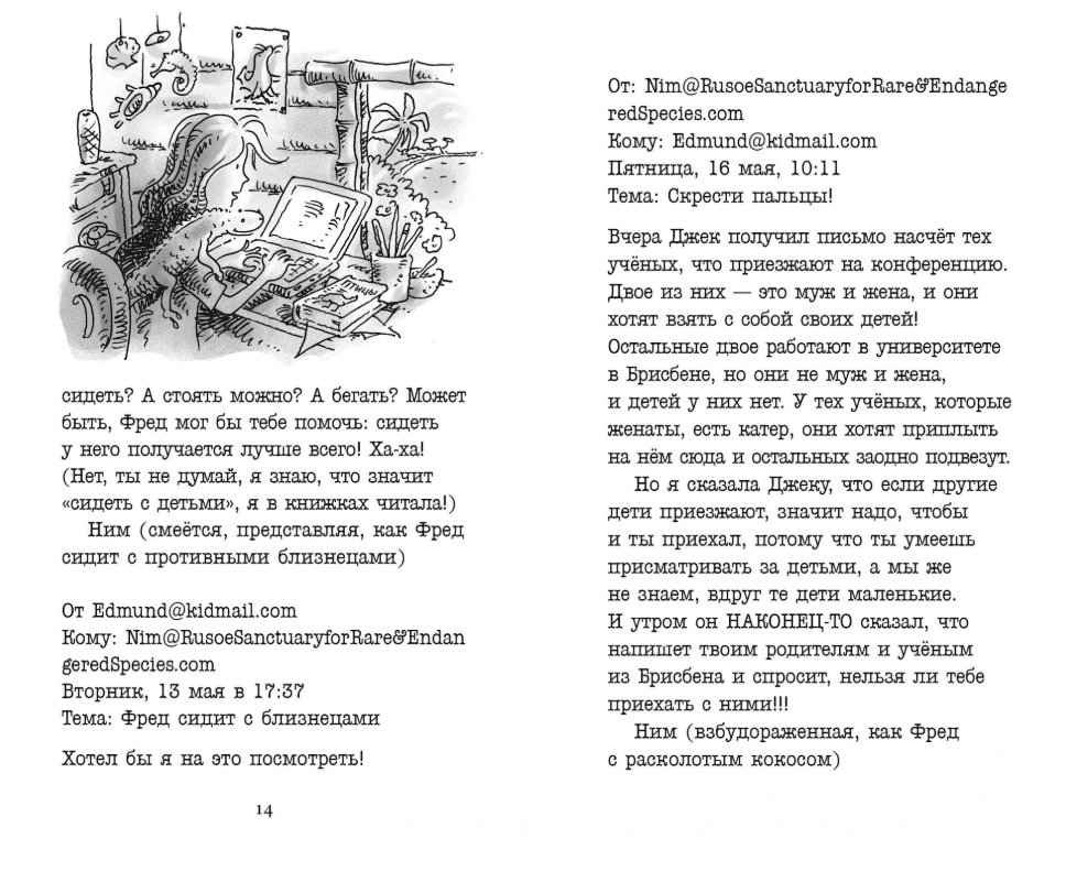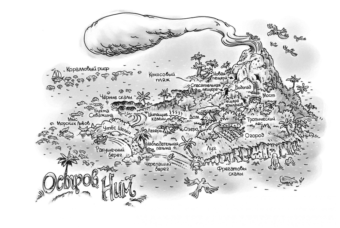 Ним, Джек и Алекс, а также невозмутимый игуан Фред и морская львица Шелки вернулись на любимый остров, в своем путешествии обретя новых друзей и множество незабываемых впечатлений. И теперь остров перестал прятаться от всего мира, – здесь проводятся даже научные конференции! Вместе с учеными сюда приезжают их дети, и однажды любопытство юных искателей приключений вознаграждается удивительной находкой. Но это открытие подвергает остров Ним ужасной опасности! Потому что кое-кто из гостей острова приехал сюда совсем не ради науки... И когда Ним узнает, в чем заключаются их истинные планы, ей придётся делать трудный выбор.