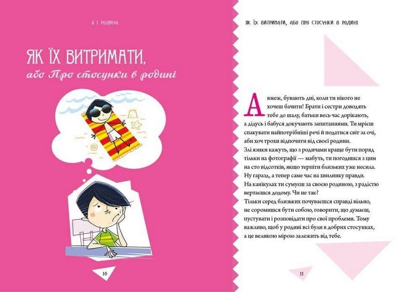 Ну як їх витримати? Це питання, напевно, спадало тобі на думку вже не раз, коли доводилося терпіти батьківські нарікання, незадоволені й розчаровані погляди. О так, хіба цим дорослим догодиш?! А коли до того додати ще й проблеми у школі, складні взаємини з однолітками і перехідний вік загалом, то дуже важко дивитись на світ крізь рожеві окуляри... Тобі здається, що навколо суцільний хаос і годі зрозуміти, як чинити правильно. Якщо хочеш упоратися з усім тим жахіттям, відкривай «Порадник підлітка». Тут знайдеш багато корисного. Дізнаєшся, між іншим, як порозумітися з учителями, спланувати своє навчання і справи так, щоб мати більше часу для розваг. Навчишся ввічливо розмовляти з людьми й вести здоровий спосіб життя. Що іще? Хутчіш дізнавайся!