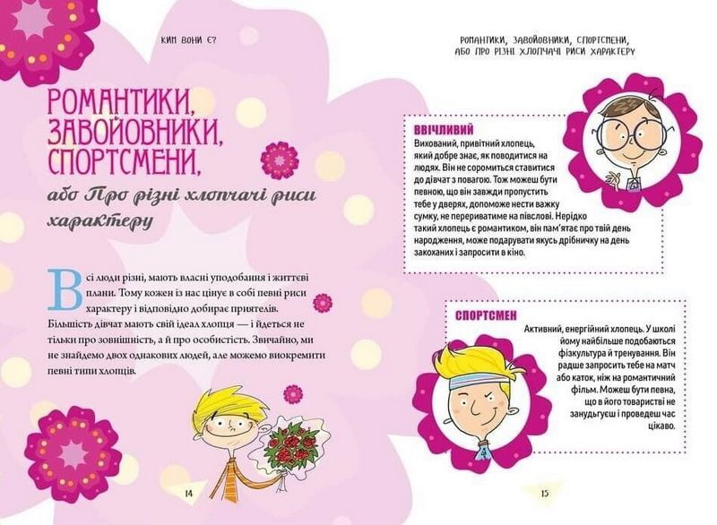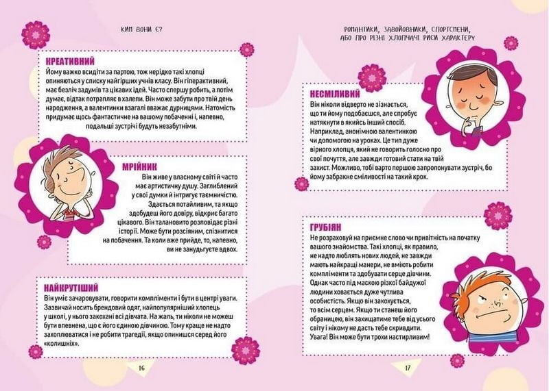 Хлопці здатні в одну мить розізлити нас, а вже за хвилину розсмішити дотепним жартом чи зворушити милою витівкою. Ну як їх витримати і не з’їхати з глузду?! Прочитай порадник, і дізнаєшся, якими хлопці є насправді і чому саме такими. Окрім того, знайдеш відповіді на інші питання, які цікавлять тебе щораз більше: про що і як розмовляти з хлопцем, як поводитися на побаченні і вгамувати у собі вир суперечних почуттів. Дізнайся більше про світ хлопців, щоб краще й певніше почуватися в їхньому товаристві.