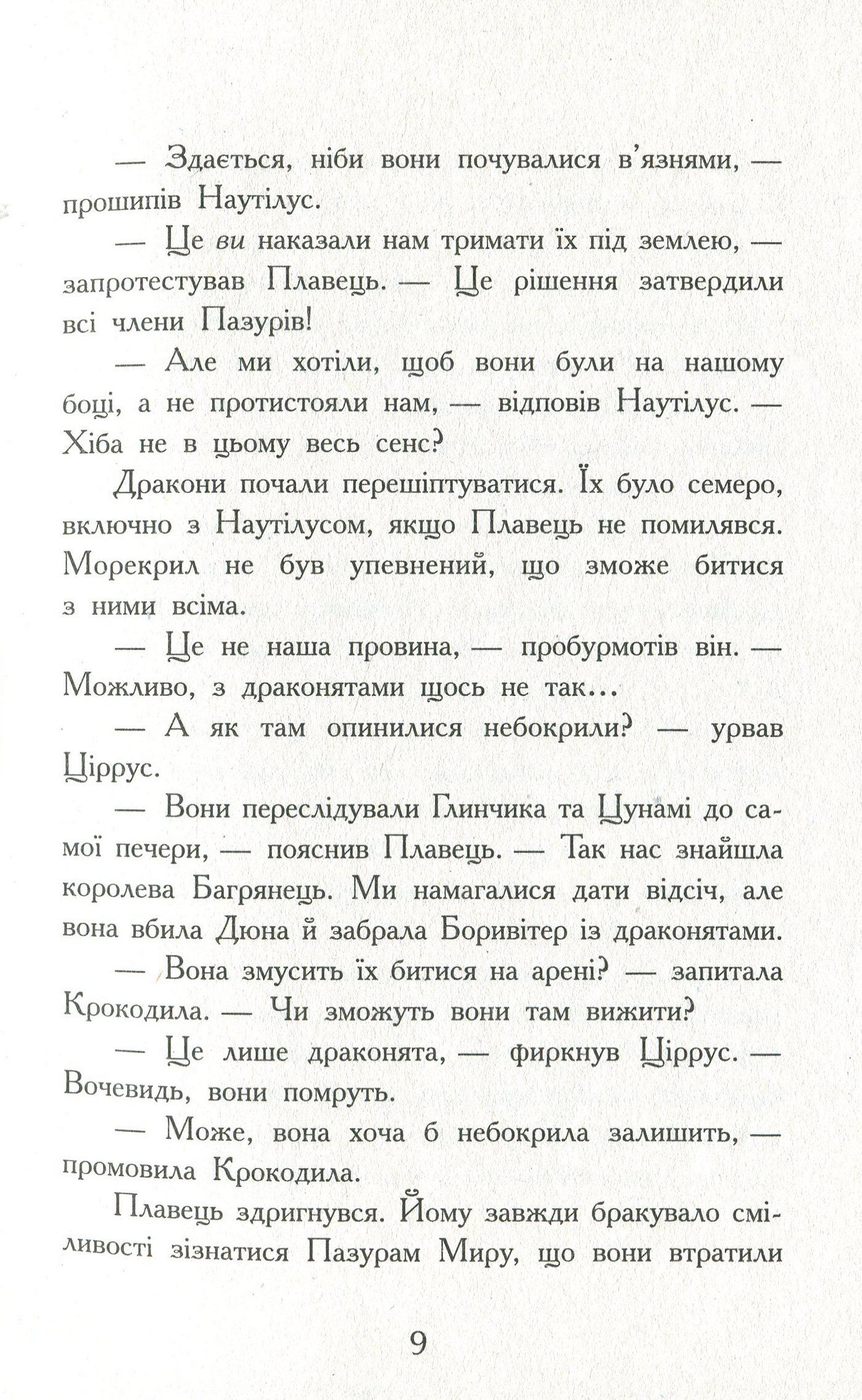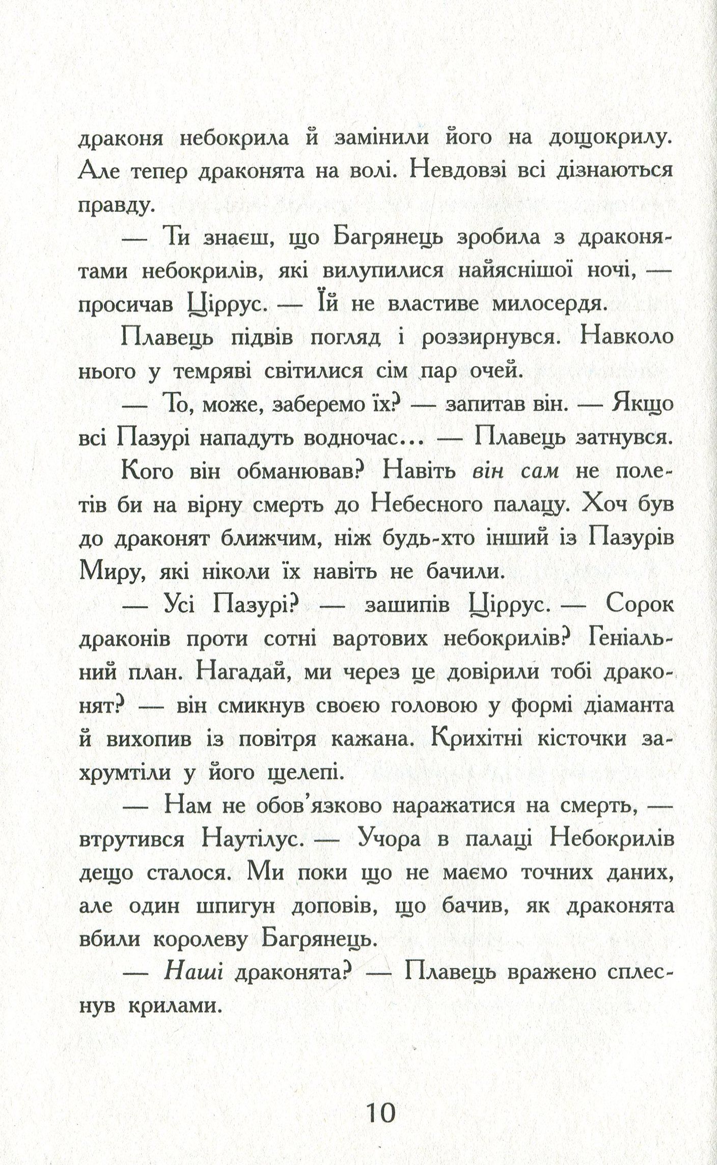 Друга книжка серії «Крила вогню» продовжує знайомити нас із континентом Піррія та племенами драконів, які на ньому мешкають. Цього разу п'ятеро драконят долі, опиняються в Морському королівстві. Вони прямують туди в пошуках захисту, адже дізналися, що одна з драконят. Цунамі, — єдина донька королеви морекрилів Корал, найкращої та най-добрішої (якщо вірити сувоям) королеви всіх часів. Та чи справдяться надії драконят після того, як з'ясується, що Корал сама написала всі сувої про себе, і до того ж у Цунамі вже є сестра.