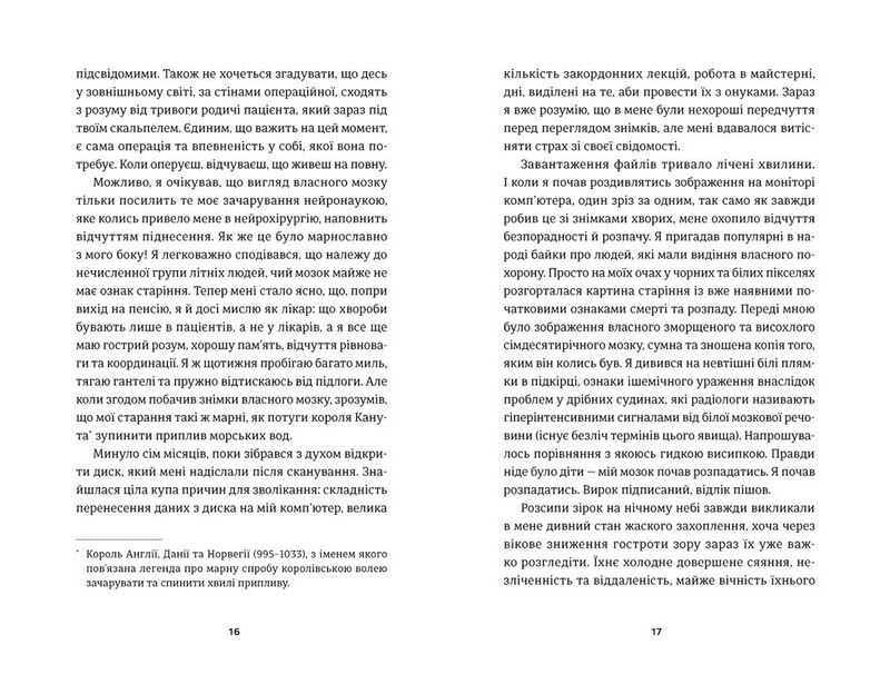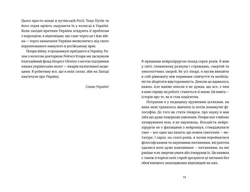 Генрі Марш, нейрохірург із багаторічним стажем, уже на пенсії. Він боровся за людські життя, а тепер сам опинився в ситуації, що може стати його смертним вироком. У цій книжці він пише про заплутаний шлях від лікаря до пацієнта, бо тепер він — уже не в лікарському халаті, а на картці хворого — його прізвище. Генрі Марш нотує спогади про минуле та розмірковує про справи, які треба завершити. І зараз він більше, ніж будь-коли, зачарований таємницями науки і мозку, красою світу природи та любов’ю до своєї родини.