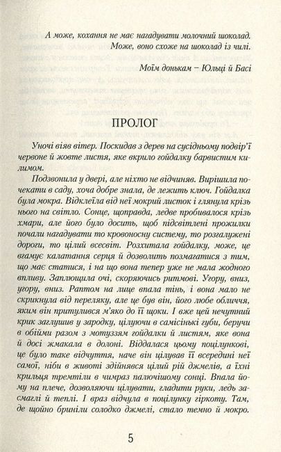 Вам доводилося куштувати шоколад із чилі, де солодкий смак поєднується з гіркотою? Саме його нагадує життя 17-річної Лінки, яка щойно вступила до омріяного ліцею. Вона відшукала давно втрачену сестру й нарешті розібралася у своїх почуттях до Адріана. Здається, перед нею чудове майбутнє. Проте не все так рожево. На навчання Лінці доведеться заробляти, мама не в стані сплатити за дорогий приватний ліцей, стосунки із сестрою теж не завжди ідеальні. Крім того, коханий їде навчатися до Лондона, а це означає кількамісячну розлуку. Лінка живе в очікування Різдва, бо тоді Адріан має приїхати до Польщі. Проте на неї чекає неприємний сюрприз. Що ж, може, кохання не завжди мусить бути солодким, як молочний шоколад? Може, воно нагадує шоколад із чилі?