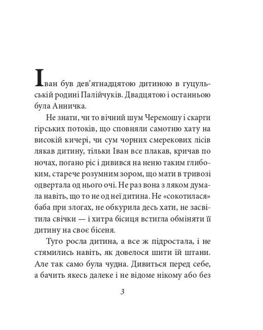 Михайло Коцюбинський (1864-1913) – тонкий знавець поетичного слова й людської душі, блискучий оповідач. Ці свої таланти письменник сповна розкрив у шедеврі української літератури – повісті «Тіні забутих предків». Історія, яку він розповідає, стара як світ. Її герої – Іван і Марічка, ще з дитинства палко кохають одне одного, проте не можуть бути щасливими разом. Їхнім родинам байдуже до почуттів молодих людей, бо вони ворогують між собою і навіть заради дітей не ладні вгамувати нікчемні пристрасті. Однак у творі є ще одна, чи не найголовніша дійова особа – авторові вдалося перенести на папір і магічну красу Карпат, і колорит Гуцульщини, з її переказами, віруваннями, символами, які й формують світогляд гуцулів.
