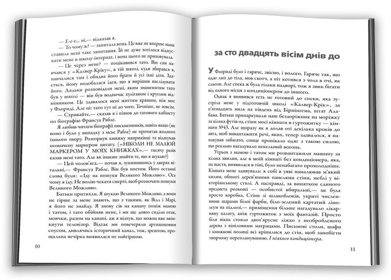 Майлзу Голтеру набридло безпечне домашнє існування. Все його життя — це повна відсутність подій, а його одержимість останніми словами видатних людей ще більше змушує його праг-нути отого «великого можливо» (як сказав Франсуа Рабле). Він готовий до подорожі, до божевільної втечі. Й тоді на його шляху постає Аляска Янг. Прегарна, розумна, кумедна, сексуальна, саморуйнівна, збентежена й неймовірно приваблива Аляска Янг. Вона сама — ціла подія. Вона затягує Майлза у свій світ, у «велике можливо», вона краде його серце. Відтепер ніколи вже не буде, як раніше.