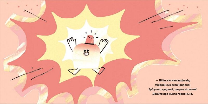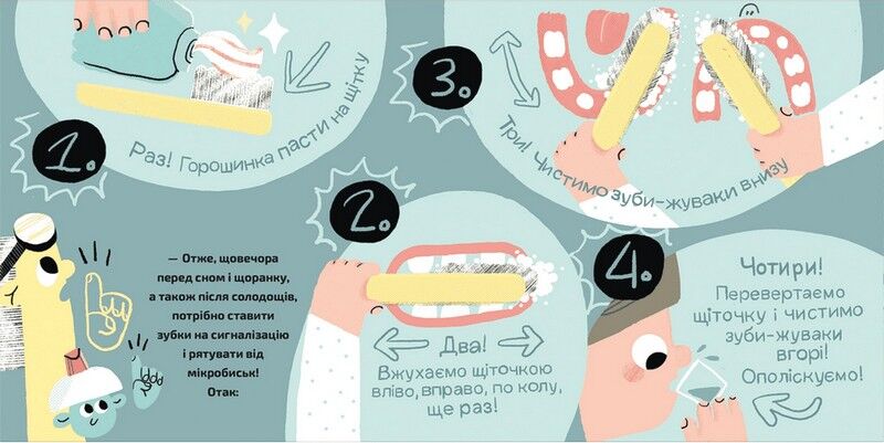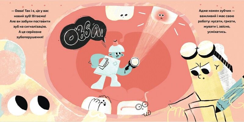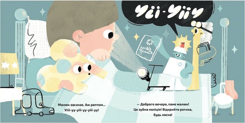 Малюк уже вклався спати, але зненацька до нього навідується зубна поліція. Виявляється, в малого героя виріс новий зубчик, а він не поставив його на сигналізацію. Як правильно це зробити, і розповідає книжечка Саші Кольцової «Зубна поліція». Разом з героєм маленькі читачі навчаться доглядати за першими молочними зубчиками і дбати про їхнє здоров’я. А у віконечках картонки малюки знайдуть кумедних героїв, які там заховалися.