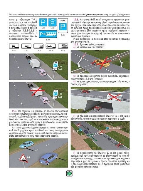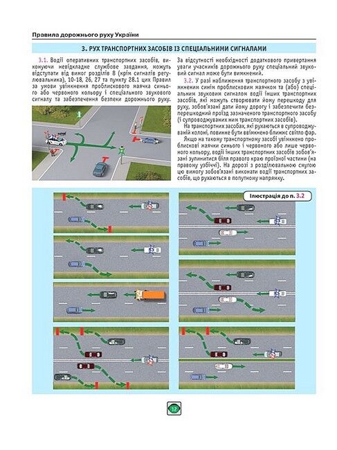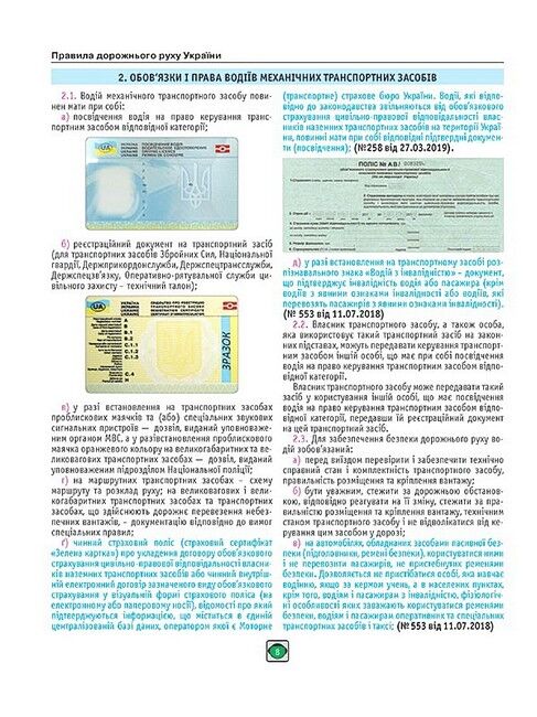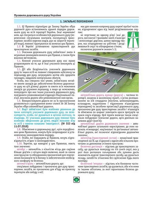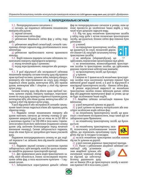 - Кольорові ілюстрації, дорожні знаки та розмітку у тексті Правил