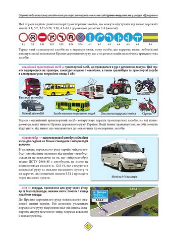- Кольорові ілюстрації, дорожні знаки та розмітку у тексті Правил