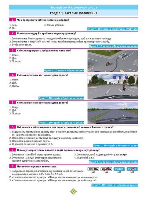 - Тестові завдання з Правил дорожнього руху, що відповідають чинним програмам навчання в автошколах для всіх категорій прав