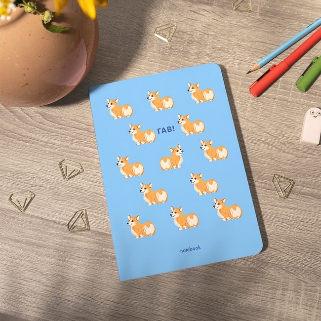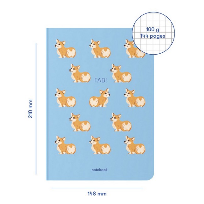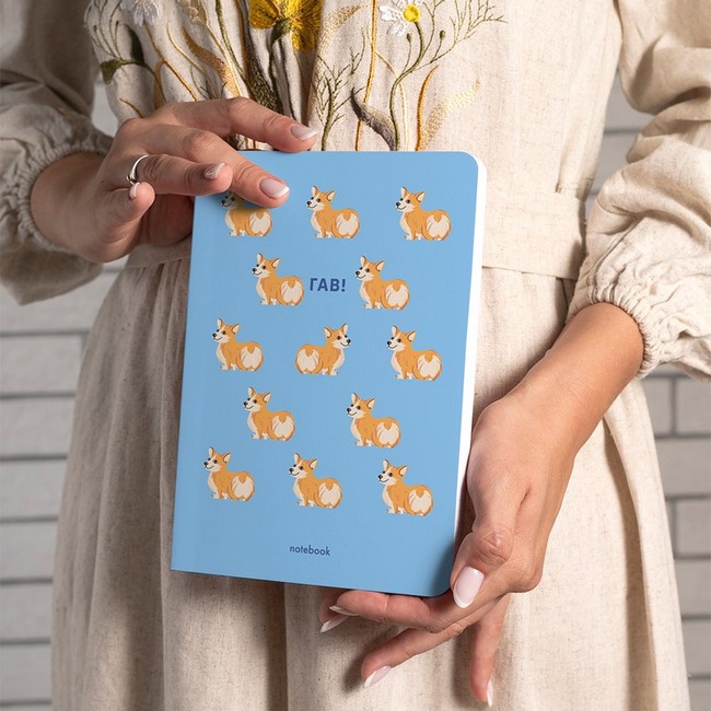«Гав! Коргі» — це 144 сторінки в клітинку, зручний А5 формат та крутий дизайн для поціновувачів хвостатих друзів.