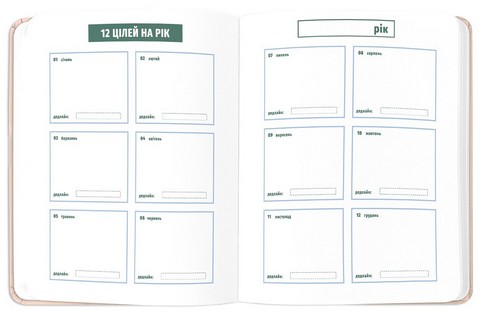 Стиль та естетику доповнюємо практичними елементами: закладка, якісний папір, конверт для схованок та багато приємних дрібничок, щоб ваше планування перетворилося на справжній ритуал.