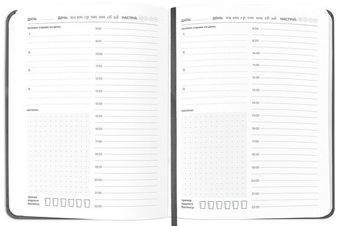 - містять додаткові круті розвороти: плани на місяць, цілі на пів року, колесо балансу, трекер звичок, список улюблених фільмів, книг, подкастів, курсів, нотатки.