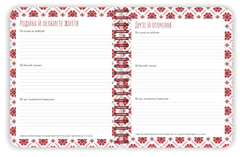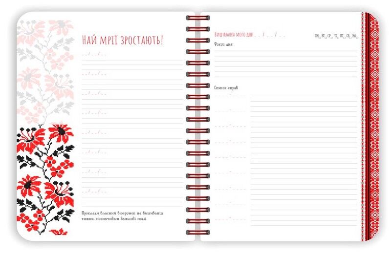 Блокнот-планувальник на пружині — необхідна річ на щодень. Він допоможе збалансувати різні сфери життя та сфокусуватися на головному. А неперевершений вишиванковий дизайн блокнота надихне на звершення, прикрасить дні візерунками, наповнить їх символами та сенсами. Може стати як чудовим подарунком для когось, так і корисним інструментом планування й саморозвитку для вас.