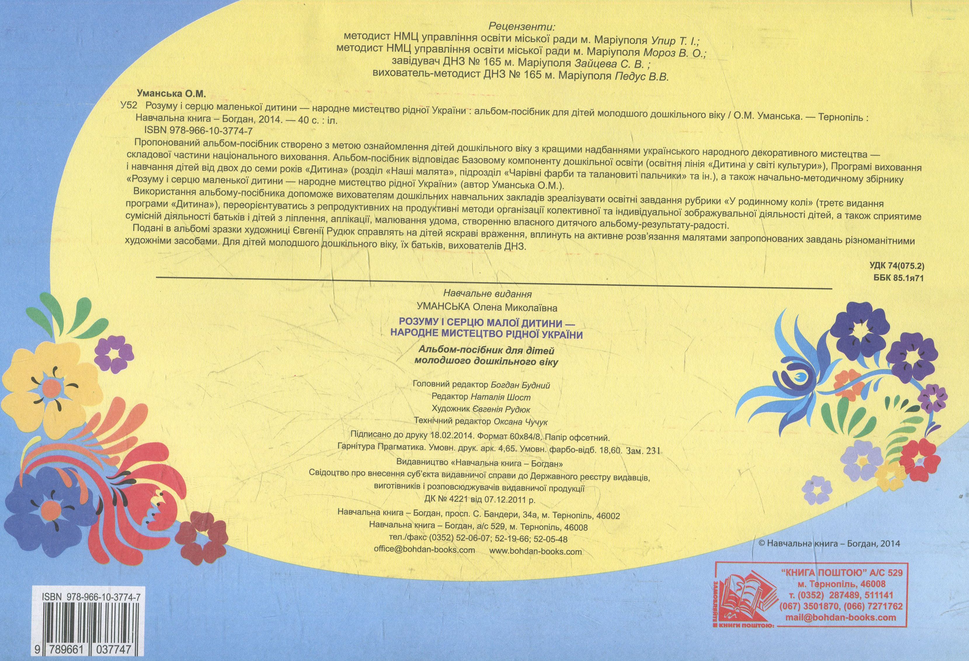 Альбом-посібник - Розуму і серцю маленької дитини - народне мистецтво рідної України для дітей молодшого дошкільного віку. Уманська О.М. Богдан. 78746