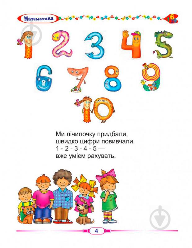 В першій частині книги подано цифри і числа від 1 до 10, предметні малюнки та цікаві вірші й лічилки.