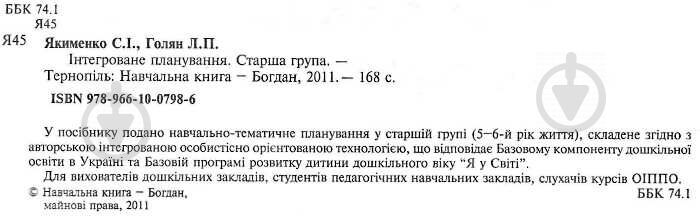 Посібник - Інтегроване планування. Старша група. Віконечко в світ. Якименко С.І. Богдан. 78675