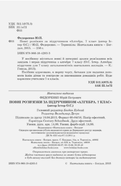 Повні розв’язки за підручником Алгебра 7 клас автор Істер О.С. Авт: Федоренко Ю.П. Вид-во: Богдан 83357