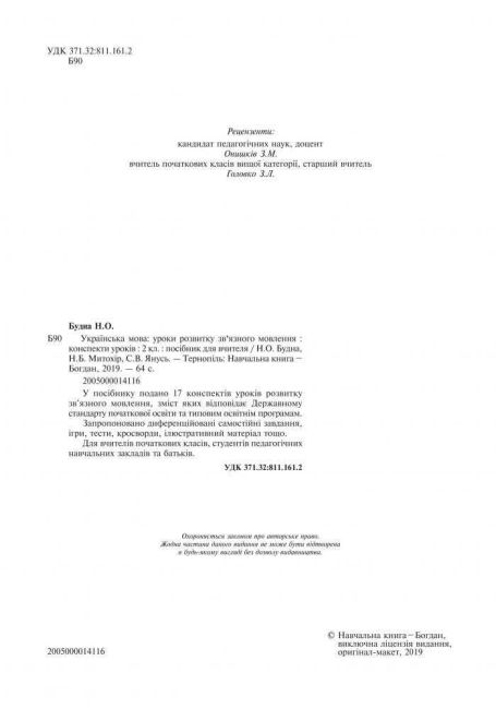 Конспекти уроків Українська мова Розвиток зв’язного мовлення 2 клас НУШ Авт: Будна Н.О. та ін. Вид-во: Богдан 83212