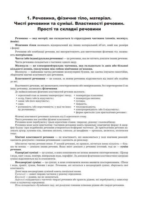 Пропонований посібник укладений відповідно до чинної програми ЗНО. Видання складається із трьох частин: «Загальна хімія», «Неорганічна хімія» та «Органічна хімія». У кожній частині подано теоретичний матеріал, який можна використовувати не тільки для повторення, а й для усунення прогалин у знаннях з тієї чи іншої теми. Для перевірки рівня засвоєння матеріалу запропоновано тестові завдання у форматі ЗНО. Чималу увагу приділено розв’язуванню типових задач, передбачених програмою. У кінці кожної частини вміщено узагальнюючі тести. Обсяг даного посібника значно більший за інші подібні видання. Це зумовлено великою кількістю завдань (тестів, вправ, задач), що дає змогу учням засвоїти, поглибити та зміцнити знання з курсу хімії й добре підготуватися до ЗНО. До ВСІХ завдань, вправ і задач у посібнику подано відповіді. Для випускників загальноосвітніх навчальних закладів, абітурієнтів та вчителів хімії.