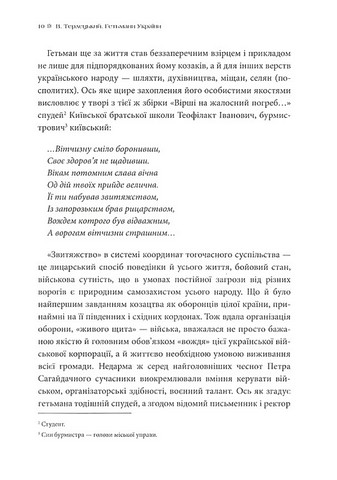 \nУ книжці подано повні біографії гетьманів, створені з урахуванням найновіших досліджень українських істориків. У ній читач знайде й відкриє для себе багато маловідомих фактів і цікавих інтерпретацій історичних подій, які дадуть змогу під іншим кутом подивитися на діяльність видатних персонажів минулого.