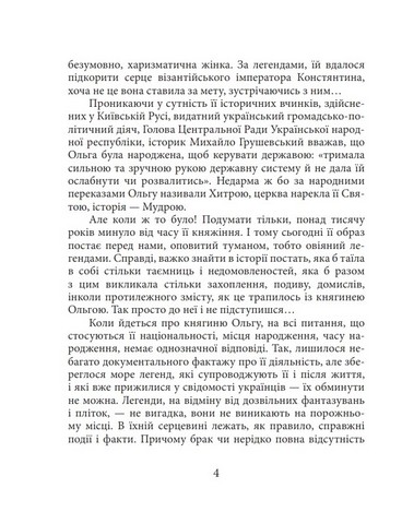 Княгиня Ольга (? — 969) — перша жінка-правителька давньо-української держави, яка відіграла вирішальну роль у її становленні в IX столітті, у часи, коли права жінок не враховувались, а сама жінка мала в суспільстві нижчий стан, аніж чоловік. Перша християнка Київської Русі, вона майже два десятиліття керувала державою і налагоджувала дипломатичні відносини з європейськими країнами. Княгиню Ольгу можна назвати універсальною та унікальною постаттю, бо в ній органічно поєднувалися незламність і жорстокість з мудрістю та тонкою політикою.