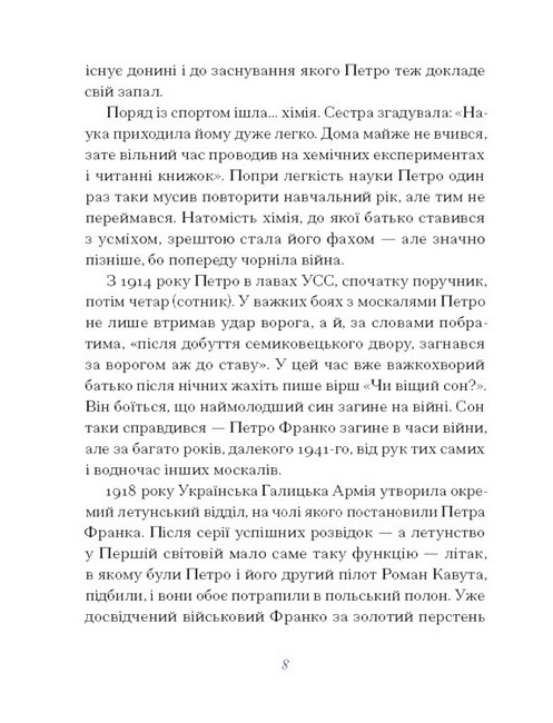 Важко сказати, що Петро Франко був у тіні історії. Ще за життя непосидючий син Каменяра мав визнання, адже доклався до безлічі справ — від керування першим летунським відділом Української Галицької Армії та поширення «Пласту» в Україні до хімічних досліджень, видавничої діяльності і створення першого батькового музею. Але Петро також писав. Як і в житті, у текстах бачимо пошуки власного шляху через експерименти з жанрами й темами.