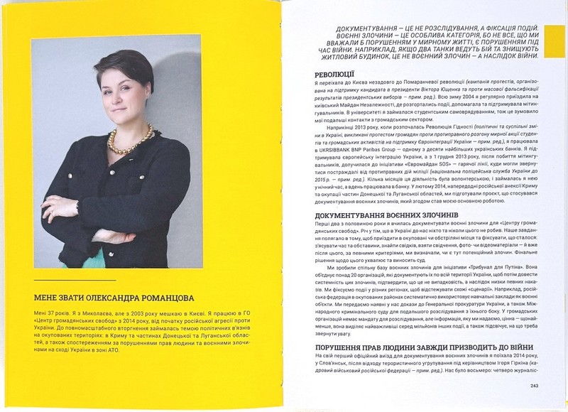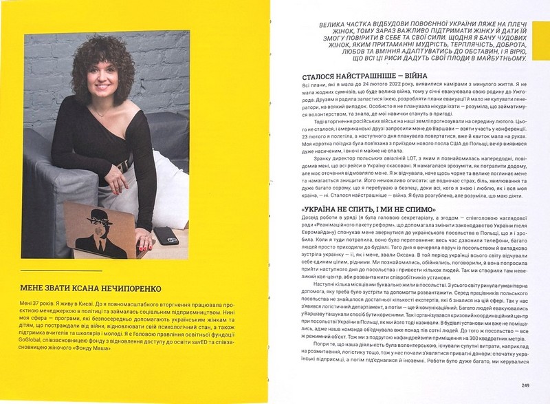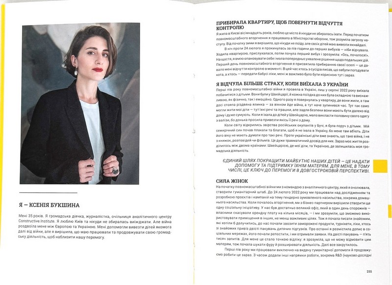 Ці українки подолали довгий шлях від розгубленості в перший день повномасштабного вторгнення до невпинної рішучості, що народилася згодом. І саме ухвалені рішення допомогли їм подолати шок та почати діяти. У виданні описані стани й почуття, з якими героїні зіткнулися, поглянувши в очі війні та досвід, набутий в її реаліях.
