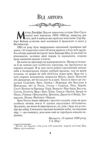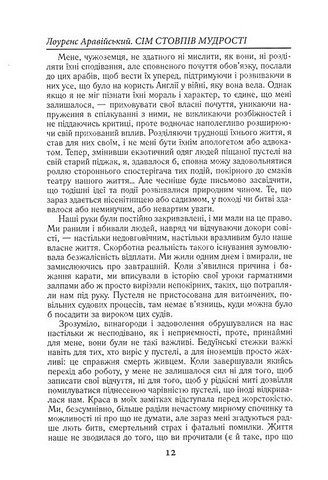 Томас Едвард Лоуренс, більш відомий як Лоуренс Аравійський, — знаменитий англійський розвідник, політик, письменник, перекладач. Його яскравий і незвичайний автобіографічний роман «Сім стовпів мудрості» — одна з найпопулярніших і найтиражніших книг у світі (за його мотивами знято легендарний фільм «Лоуренс Аравійський», один із шедеврів світового кінематографа). У цій книзі химерно поєднуються середньовічний екзотичний світ арабів, які вшановували Лоуренса майже як Месію, і реалії західного світу, що безцеремонно вторгся на початку минулого століття на Близький Схід. Але найголовніше в ній — душа Аравії, яку Лоуренс відчув і описав так, як це не вдавалося жодному з європейців.