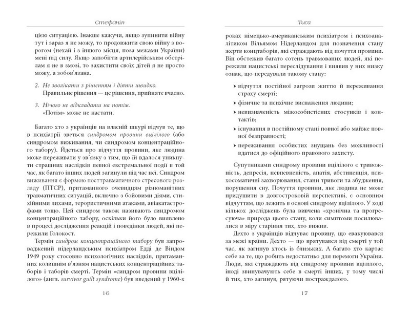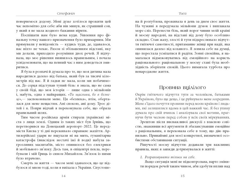 Синдром провини вцілілого, упередження нормального перебігу, втраченого часу і відкладеного життя, травма вимушеного переселенця, які стали невід’ємною складовою життя багатьох українців, знаходять висвітлення у книжці, що допоможе зцілитися і знайти свій шлях до посттравматичного зростання.