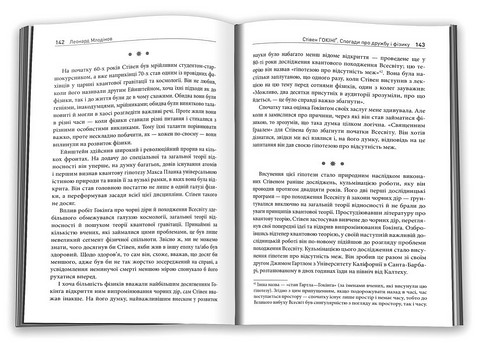 У своїй новій книзі відомий американський фізик-теоретик і популяризатор науки Леонард Млодінов згадує про спільну роботу з видатним британським ученим нашого часу Стівеном Гокінґом (1942-2018). Читач познайомиться з науковим і особистим життям Гокінґа, в тому числі тим, як видатний учений десятиліттями долав недугу, від якої міг померти ще в молодому віці, але попри це вижив і зробив неоціненний внесок у теоретичну фізику, запропонував революційні ідеї в сфері космології. Автор у популярній формі намагається пояснити деякі таємниці походження Всесвіту, особливості чорних дір і значення цих та інших ідей для наших уявлень про світ, в якому ми живемо. Викладення науково-популярних ідей сучасної теоретичної фізики та космології перемежовуються із зарисовками з діяльності Стівена Гокінґа, який попри важку форму інвалідності зумів прожити цікаве та яскраве життя, пізнав кохання, досяг тріумфу і зазнав розчарувань.