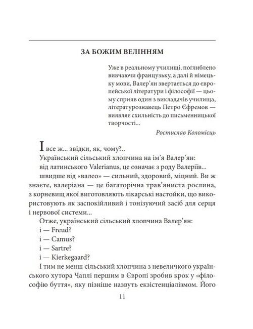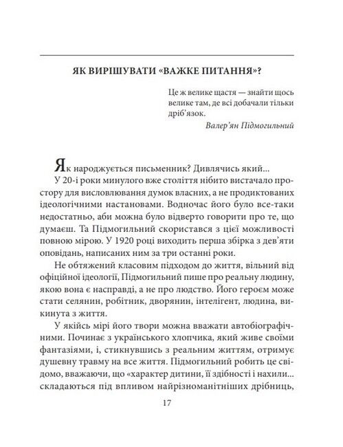 Валер’ян Підмогильний (1901—1937) — письменник, перекладач, літературознавець, мовознавець, організатор літературно-мистецького процесу. У своїй творчості спирався на психоаналітичні дослідження Зиґмунда Фройда, сприяв входженню української літератури до європейського культурного простору. Його пророчий дар дозволив випередити шукання французьких письменників-екзистенціалістів Жана-Поля Сартра й Альбера Камю.
