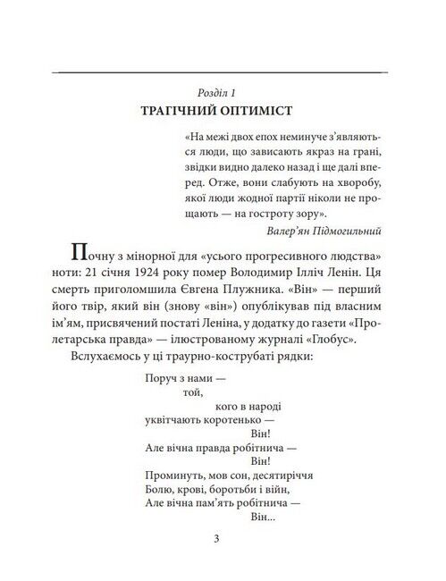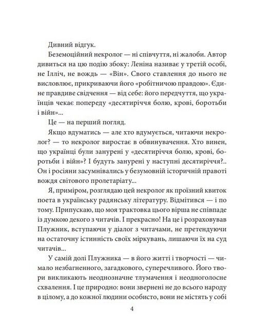 Український бібліотекознавець, книгознавець, літературознавець Юрій Меженко сказав про нього: «Такого поета ми в житті будем довго чекати і дай нам Бог, щоб ми дочекалися». Євген Плужник (1898-1936) був знаковою фігурою післяреволюційної української інтелігенції. Поет, драматург і перекладач, він перебував поза політикою у своїх віршах і належав до тих унікальних особистостей, яким дано бачити цілий світ, не виходячи з кімнати. Він не кидав антирадянських гасел, не вступав у політичну полеміку і ніколи не помишляв бути комуністом. Відторгнення дійсності, що заперечувала вічні цінності, – людське життя і любов, – разом із закликами чинити спротив сліпій жорстокості, зробило його героєм українського розстріляного Відродження і жертвою сталінського терору.