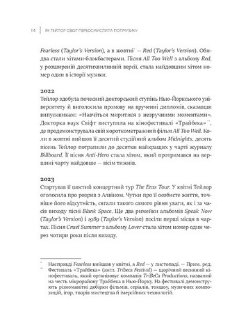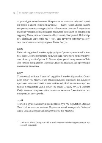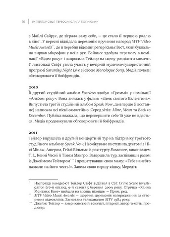 Її музика стирає кордони між поколіннями й культурами. Такої постаті, як Тейлор Свіфт, світ іще не знав. Нині вона на піку популярності, культурного й комерційного впливу, приголомшливої активності та творчості. А втім, Тейлор не полишає цього рівня впродовж останніх вісімнадцяти років.