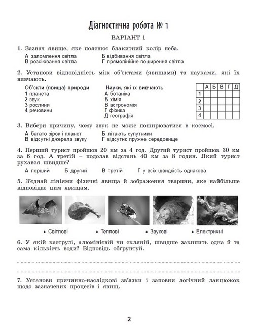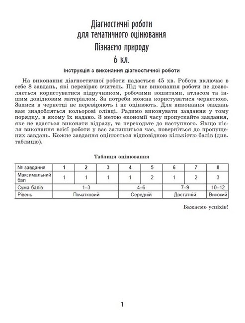 Зошит також містить вкладку з діагностувальними роботами, які розроблено у двох варіантах. Діагностувальні роботи відповідають вимогам державного стандарту, перевіряють предметні й ключові компетентності учнів.