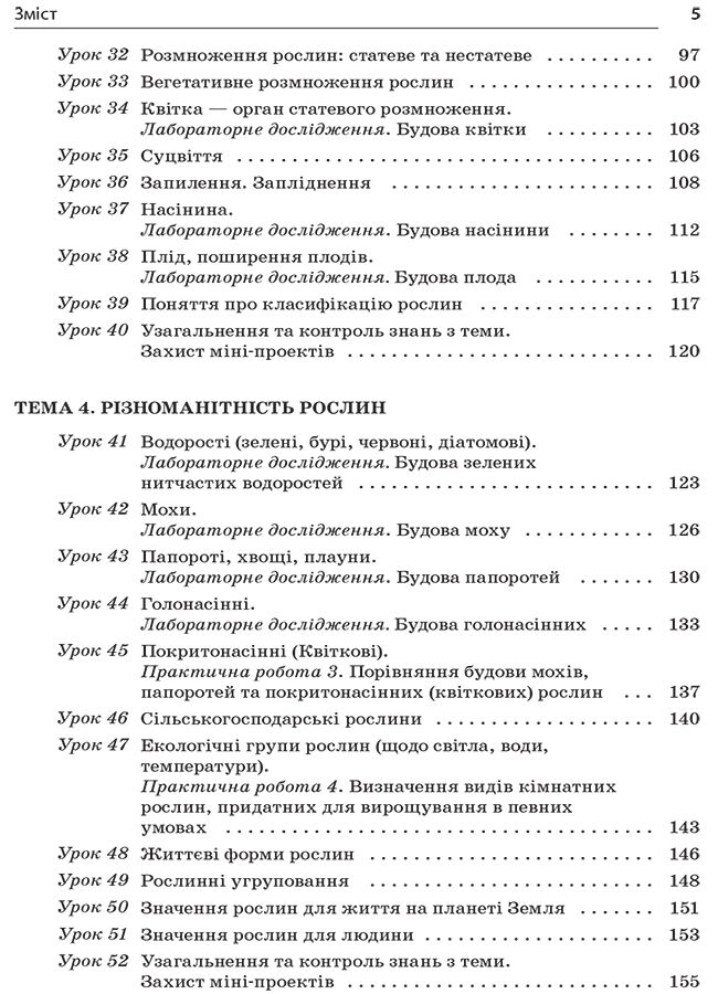 Навчальний посібник містить конспекти всіх уроків біології за новою програмою 6 класу, затвердженої Міністерством освіти і науки України. Розробки уроків характеризуються поєднанням комунікативно-діяльнісного принципу і принципу практичної спрямованості навчання, відповідають сучасним досягненням теорії і практики навчання біології. Наведено розробки лабораторних досліджень, наявність яких вимагається за новою програмою.