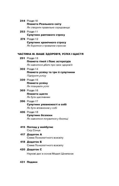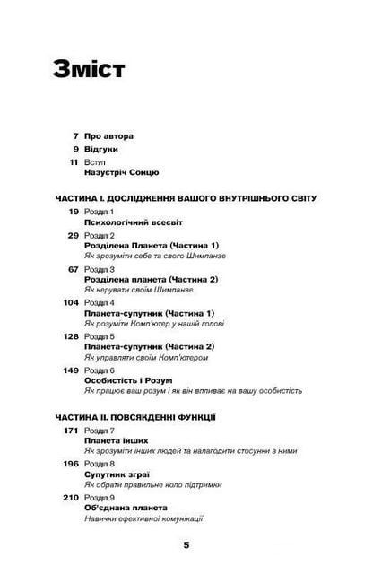 Ґрунтуючись на багаторічному досвіді роботи в клінічній психіатрії, спостереженнях за пацієнтами та спортсменами, яких консультує, Стів Пітерс пояснює, як і чому діє ваш Шимпанзе, та дає конкретні поради із управління ним.