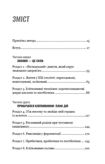 Новий план оздоровлення ґрунтується на рослинній основі й кидає виклик популярним обмежувальним дієтам. Відомий гастроентеролог Вілл Бульсевич акумулював у цій книзі найновіші дослідження мікробіому й стверджує: здоров’я кишкової мікрофлори — це ключ до активізації метаболізму, збалансованості гормонів і приборкання запалення кишечника. Він пропонує науково обґрунтований і перевірений спосіб підживити кишечник, вживаючи клітковину — харчові рослинні волокна. Вілл Бульсевич раніше мав залежність від нездорової їжі, тож на собі перевірив дію клітковини, вживання якої дуже змінило стан його організму.