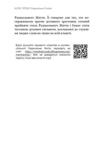 У книзі «Радикальна Любов» Колін Тіппінг, автор методу Радикального Прощення, говорить про ставлення до життя з точки зору енергії. Любов — це не лише про стосунки з іншими людьми, а й про позитивне, відкрите та щире ставлення до життя, яке обов’язково відповість взаємністю. Автор пропонує практичні поради та перевірені інструменти, які допоможуть змінити рівень життєвих вібрацій, поглибити усвідомленість і поліпшити стосунки з людьми.