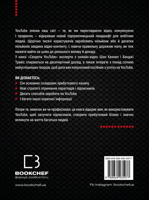 У книзі «Секрети YouTube» експерти з онлайн-відео Шон Кеннел і Бенджі Тревіс спираються на десятирічний досвід, а також інтерв’ю з понад сотнею найуспішніших творців, щоб дати вам покроковий посібник з успіху на YouTube.