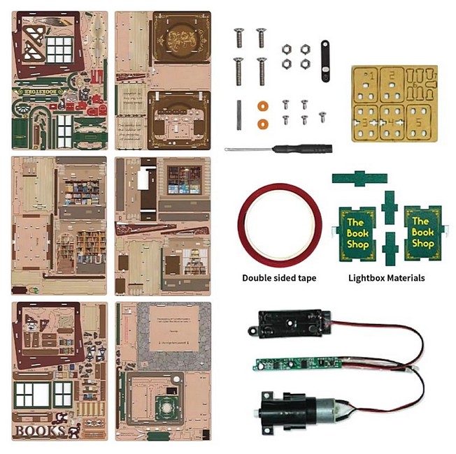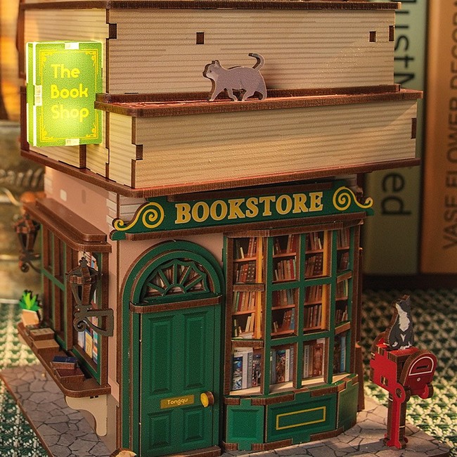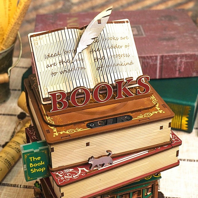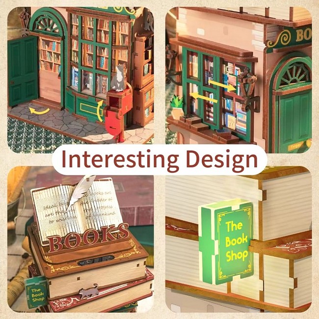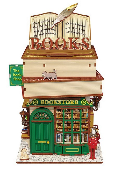 Book Nooks (Бук Нукс) перекладається як “книжкові закутки” – це спеціальні вкладки, які ставляться на полиці між книгами. Ці вкладки створюють "віконце" в чарівні світи, що можуть відсилати до якого-небудь твору або просто прикрашати полицю. “Книжкова крамниця” – це один з найбільш атмосферних і захопливих наборів, який привертає увагу своїми яскравими деталями та атмосферою книжкового світу.