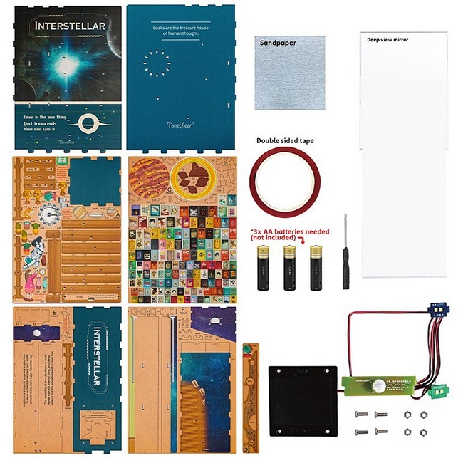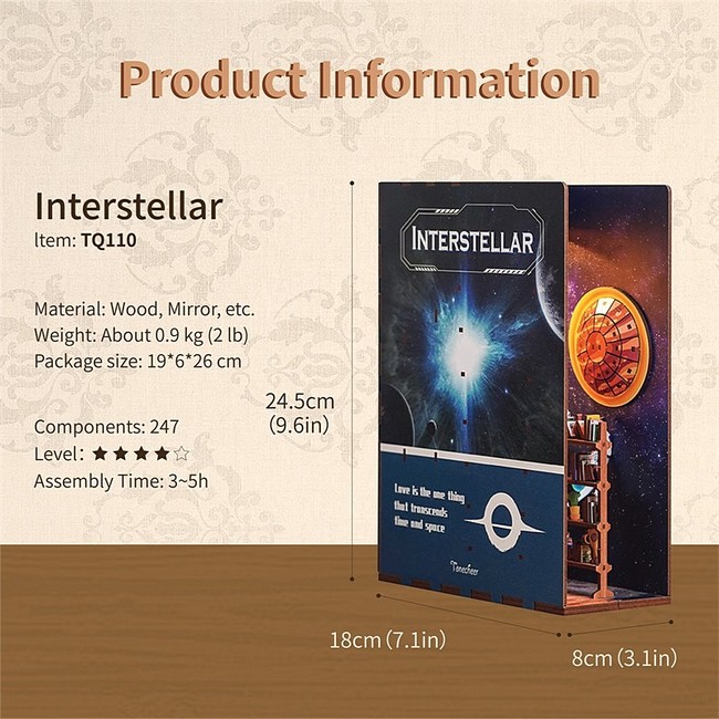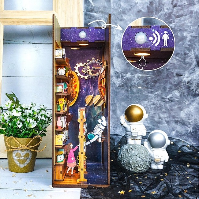 Book Nooks (Бук Нукс) перекладається як “книжкові закутки” – це спеціальні вкладки, які ставляться на полиці між книгами. Ці вкладки створюють "віконце" в чарівні світи, що можуть відсилати до якого-небудь твору або просто прикрашати полицю. “Інтерстеллар” – це один з найбільш футуристичних і захопливих наборів, який привертає увагу своїми яскравими елементами та атмосферою космічної мандрівки.
