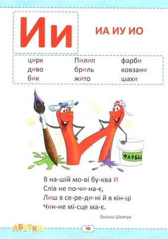 З цією книгою ваша дитина зробить найперші, найважливіші кроки в навчанні: вона вчитиметься читати. Заняття з таким помічником будуть веселими та цікавими. Яскраві малюнки допоможуть сформувати смак та творчі здібності, а дотепні добрі віршики розширять словниковий запас малюка, розвинуть його мовленнєві навички, мислення, сприйняття, уяву та фантазію.