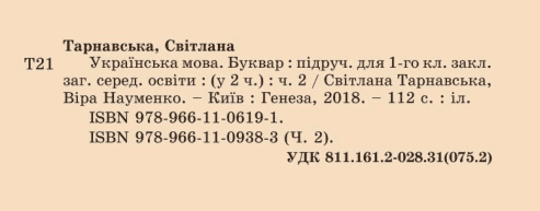 Підручник Українська мова Буквар 1 клас 1 та 2 Частини НУШ Авт: Тарнавська С. Науменко В. Вид-во: Генеза 19826