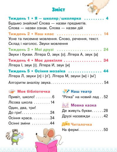- зразки для читання — друкованими та рукописними літерами,