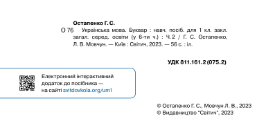 Комплект Навчальний посібник Українська мова Буквар 1 клас у 3-х частина НУШ Авт: Г.С. Остапенко Л.В. Мовчун Вид-во: Світич 90623