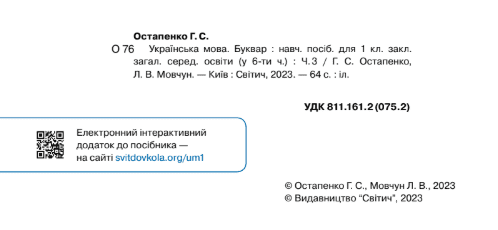 та методики початкової освіти; протокол від 23.12.2022 №2 засідання експертної комісії з проведення антидискримінаційної експертизи; номер у Каталозі надання грифів навчальній літературі та навчальним програмам №2.0024-2023)