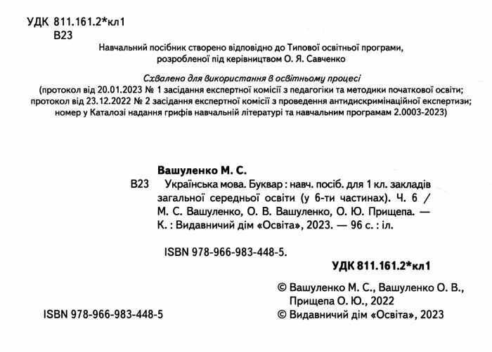 Навчальний посібник Українська мова Буквар 1 клас у 6-ти частинах Частина 6 НУШ Авт: Вашуленко М.С. та ін. Вид-во: Освіта 100821