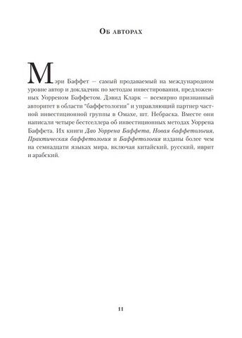 Мэри Баффет и Дэвид Кларк рассматривают инвестиционные стратегии Уоррена Баффета настолько просто и доходчиво, что их книга станет полезной как новичкам, так и опытным “баффетологам”. Написанная по мотивам фундаментального труда Анализ финансовой отчетности компаний Бенджамина Грэхема, преподавателя и наставника Уоррена, книга содержит описание важных принципов интерпретации финансовой отчетности, применяемых Баффетом при анализе деятельности приобретаемых им компаний. Книга полна искрометного юмора и мудрых изречений самого именитого инвестора современности.