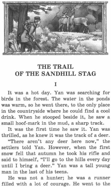 У пропонованих оповіданнях Слід оленя, Лобо та Червоношийка канадського письменника Ернеста СетонаТомпсона розкриваються як позитивні, так і негативні риси людей і тварин: азарт від мисливства, захоплення розумом та інтуїцією звірів, людяність тварин, жага до виживання.